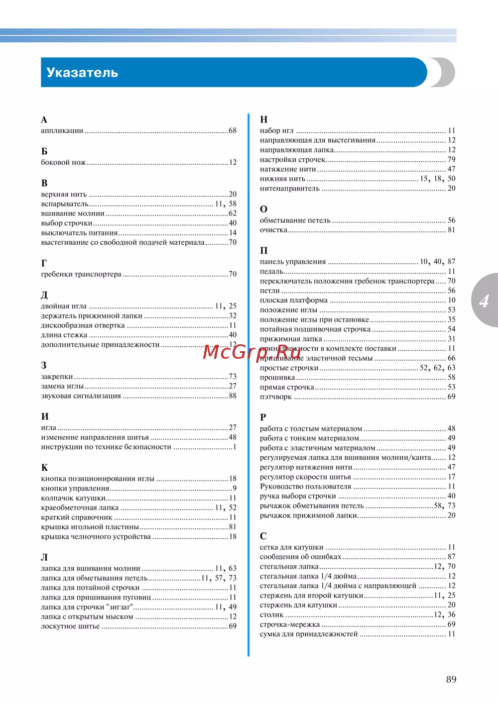 - Выполнив закрепляющие стежки швейная машина автоматически останавливается p.61