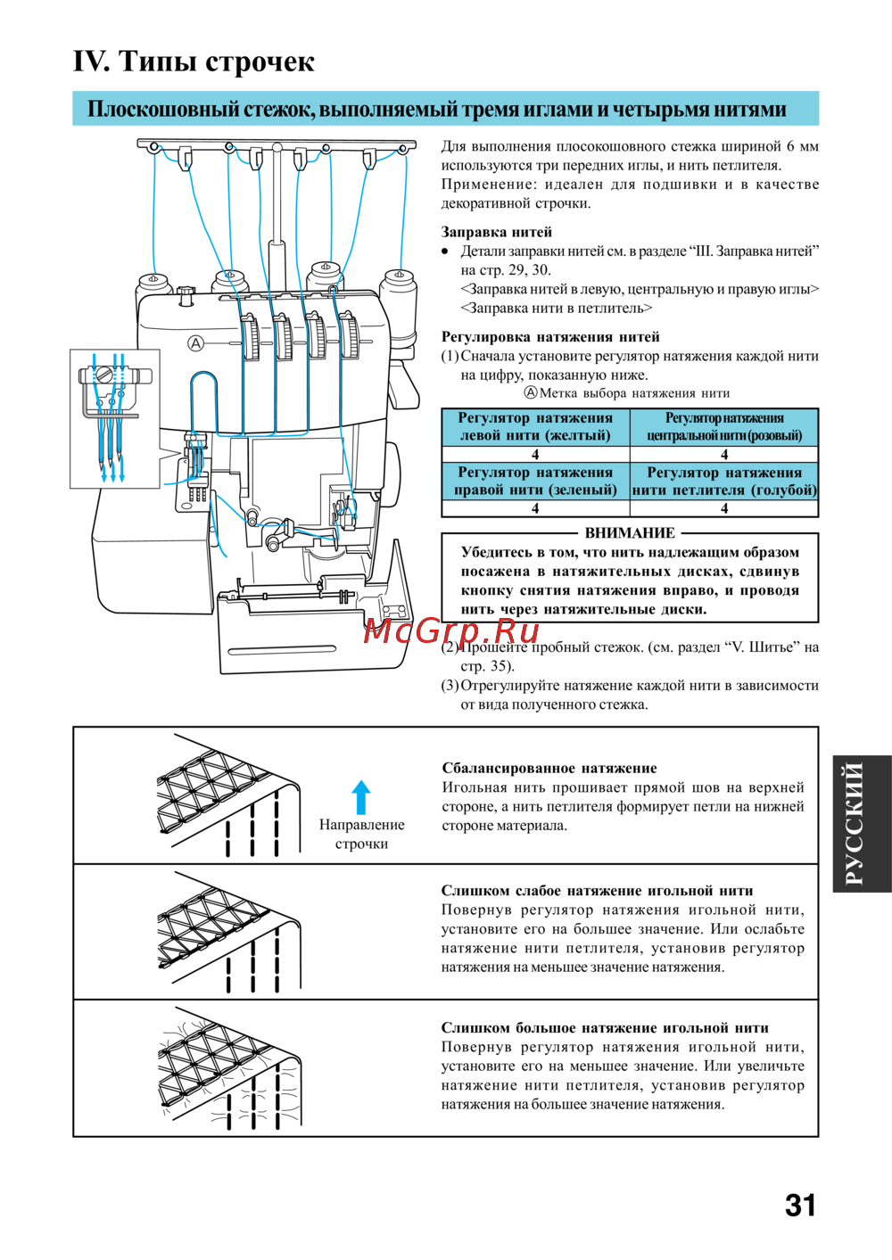 • Äåòàëè çàïðàâêè íèòåé ñì. â ðàçäåëå “III. Çàïðàâêà íèòåé”