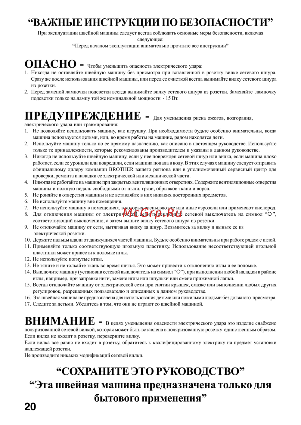 16. Ýòà øâåéíàÿ ìàøèíà íå ïðåäíàçíà÷åíà äëÿ èñïîëüçîâàíèÿ äåòüìè èëè ïîæèëûìè ëþäüìè áåç äîëæíîãî ïðèñìîòðà.