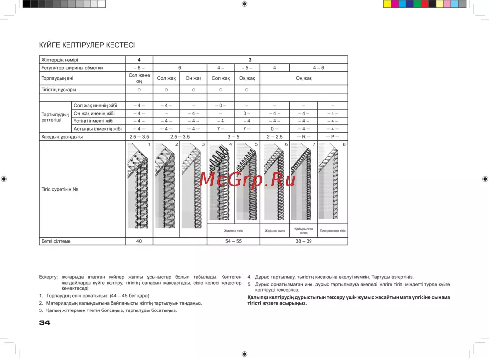 - Жіптердің саны 3 немесе 4 жіп торлаудың ені 6 мм сол жақ ине 3 мм оң жақ ине инелер haxisp нах1 130 705 н қаюдың ұзындығы 1 5 мм тігудің жылдамдығы минутына 1300 қаюға дейін габариттер 337 ммч249 ммч315 мм салмағы 8 кг p.7