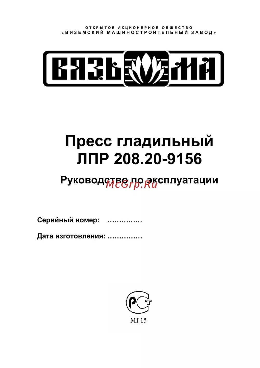 Вязьма ЛПР 208.20 Руководство по эксплуатации онлайн