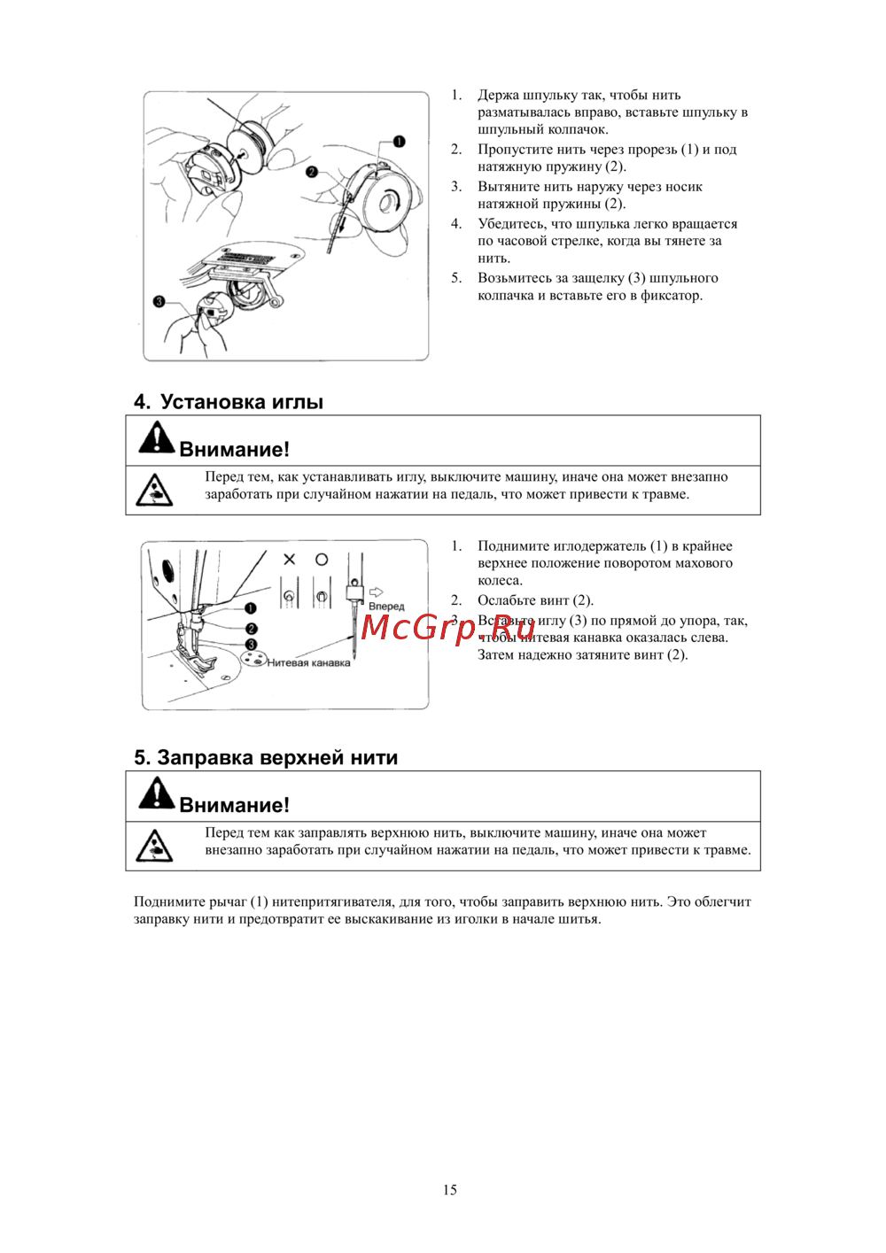 - Настройка синхронной работы иглы и вращающегося фиксатора шпульного колпачка p.21