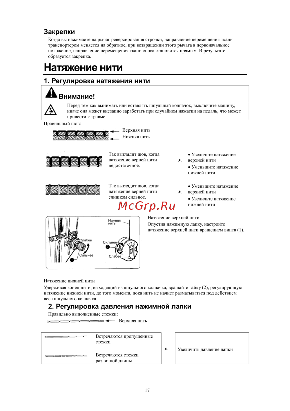 - Настройка синхронной работы иглы и вращающегося фиксатора шпульного колпачка p.21