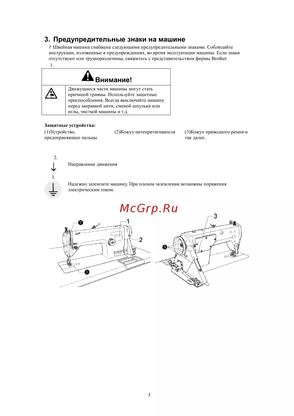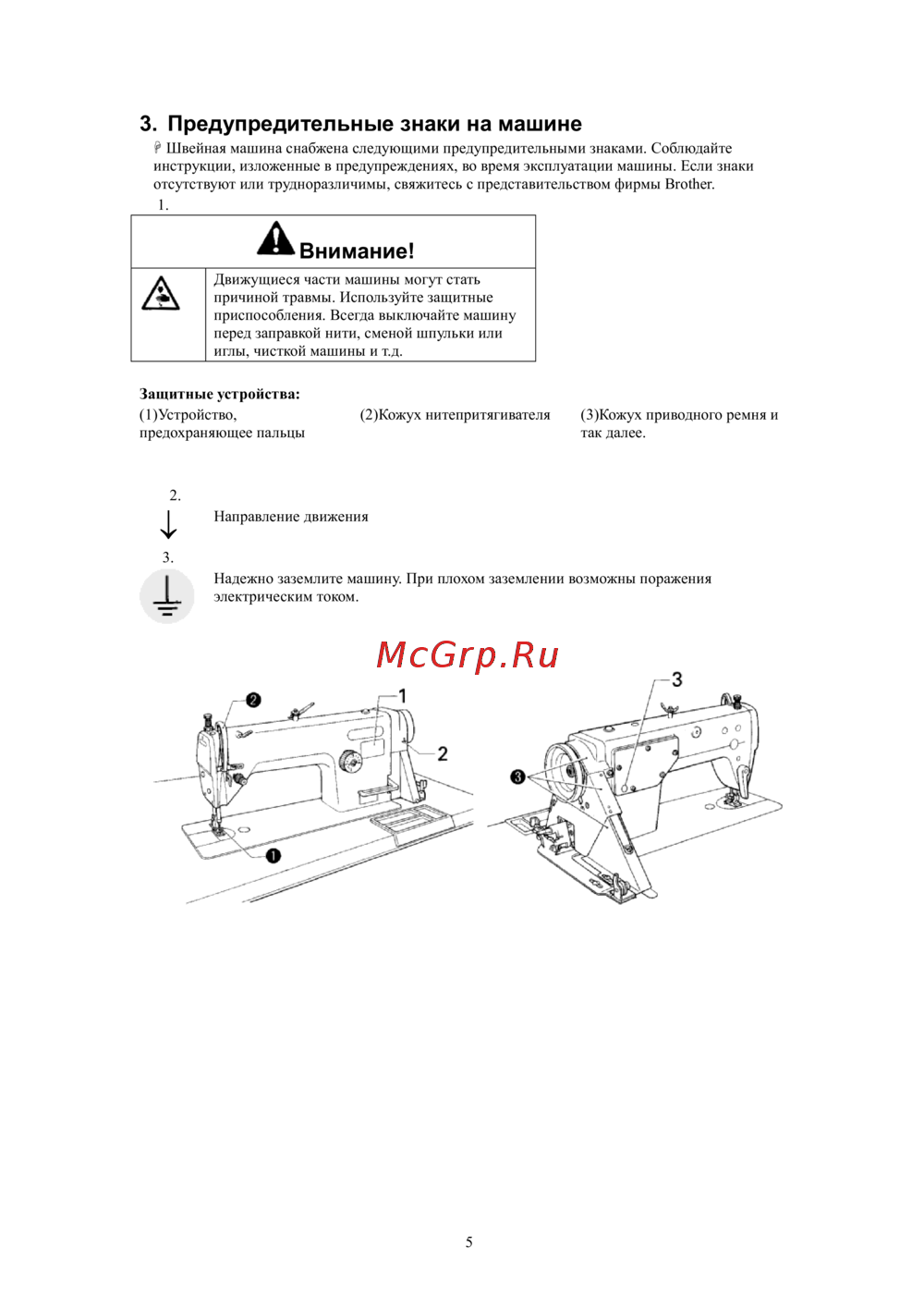Швейная машина снабжена следующими предупредительными знаками. Соблюдайте