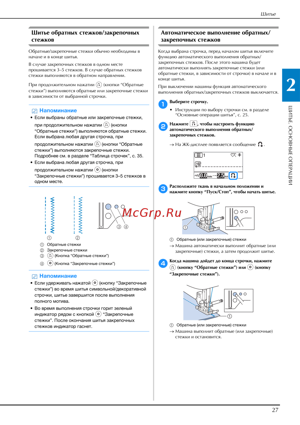 “Закрепочные стежки”) прошивается 3–5 стежков в
