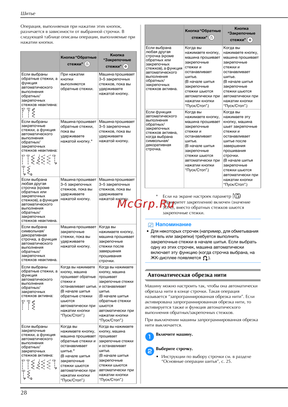 Brother NV A150 (Innov-is) [30/76] Для некоторых строчек например для обметывания петель или закрепки требуется выполнить закрепочные стежки в начале шитья если выбрать одну из этих строчек машина автоматически включает эту функцию когда строчка выбрана на жк дисплее появляется