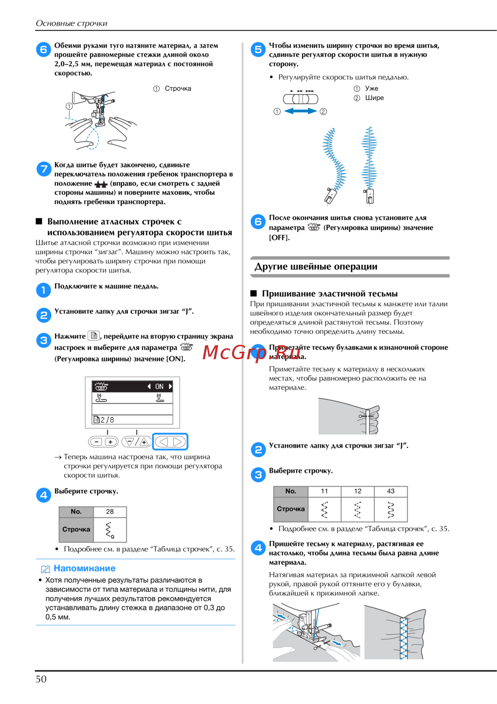 ширины строчки “зигзаг”. Машину можно настроить так,
