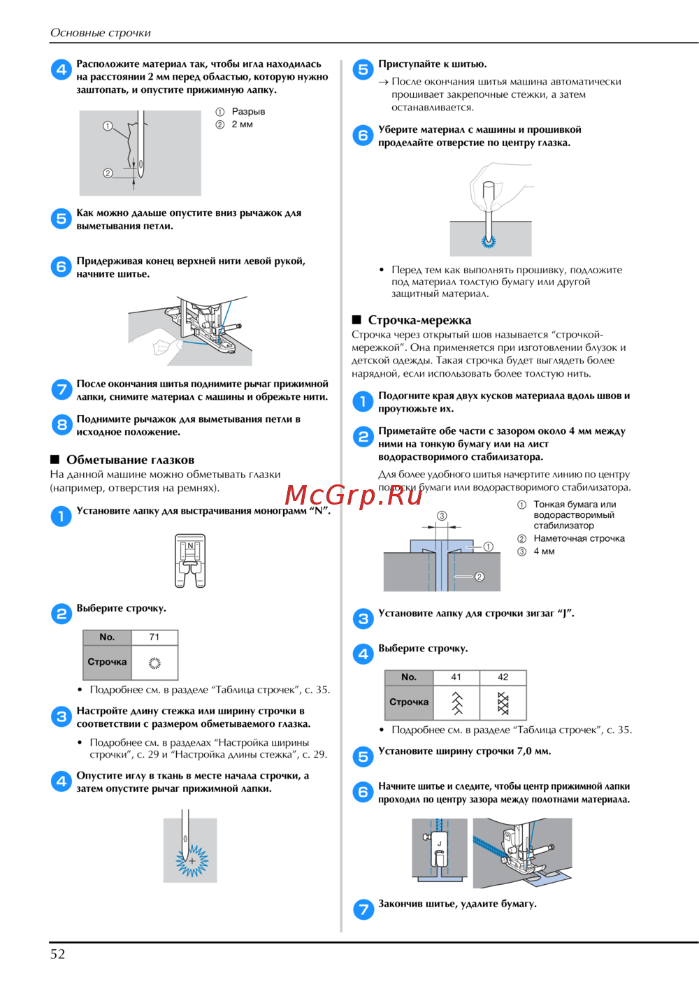 строчки”, с. 29 и “Настройка длины стежка”, с. 29.