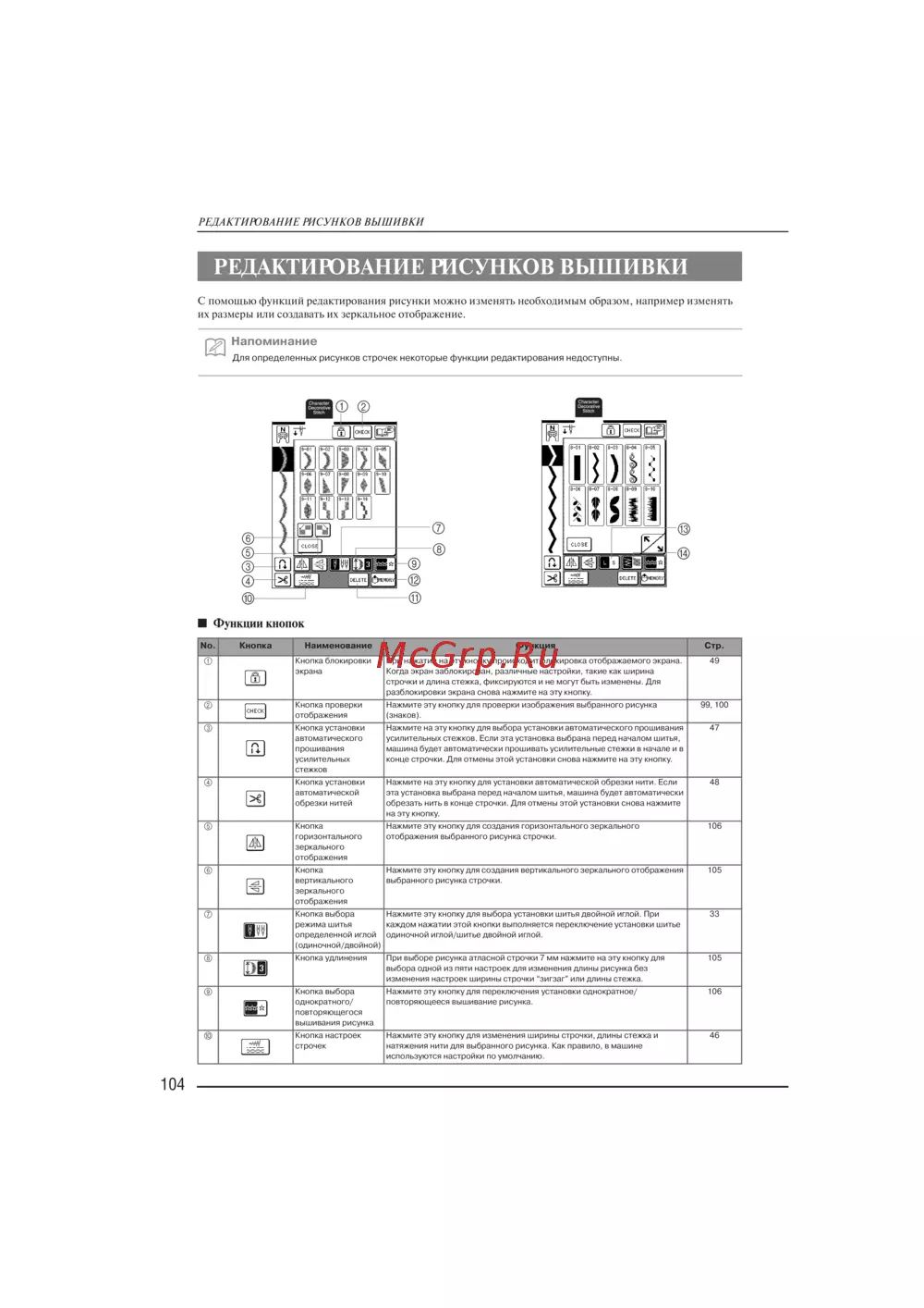 - Инструкции по правильному натяжению нити см на стр 149 p.193