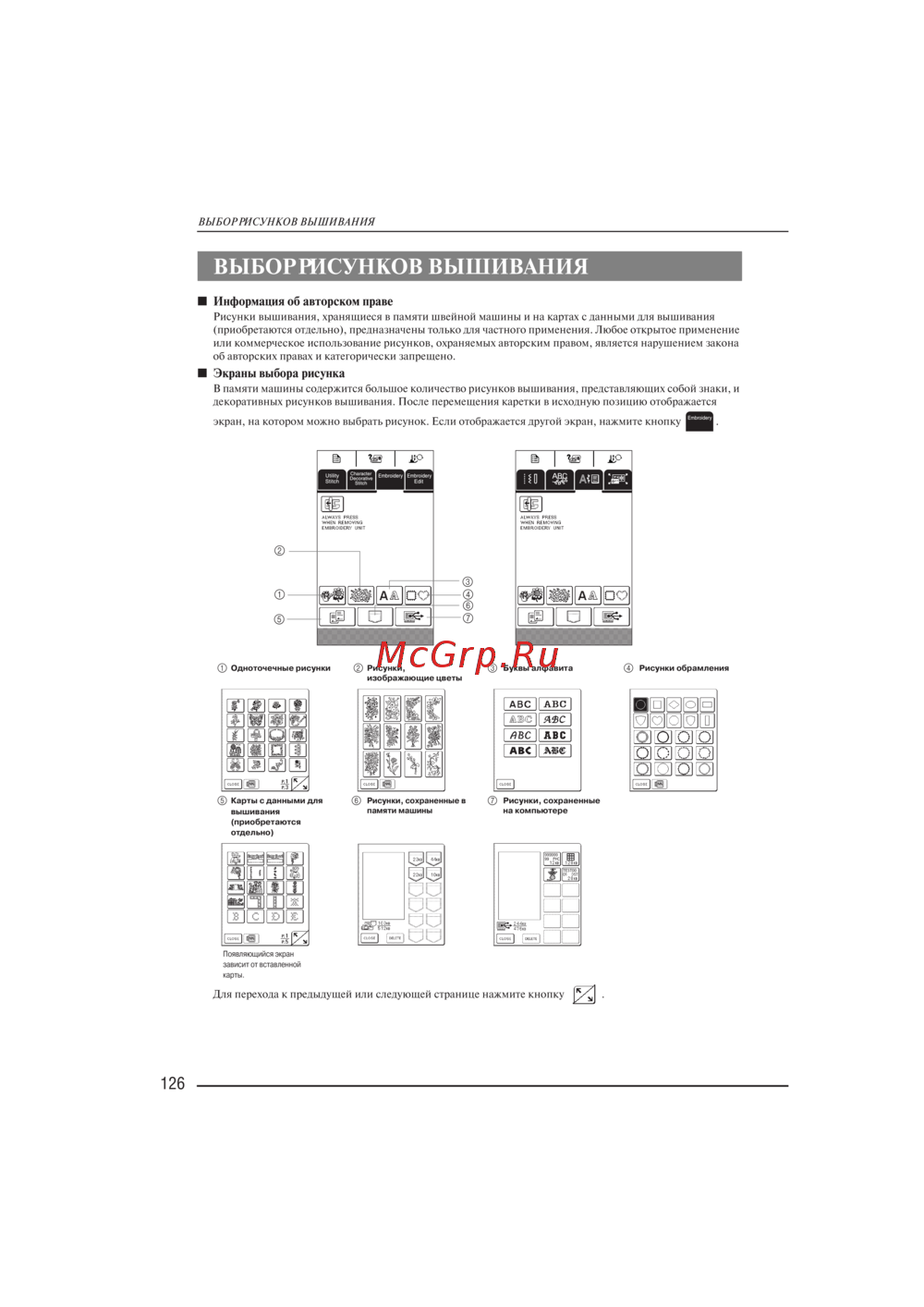 ![Brother NV 2200 [128/220] Экраны выбора рисунка](/views2/2010771/page128/bg80.png)