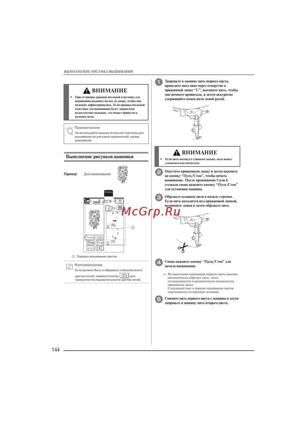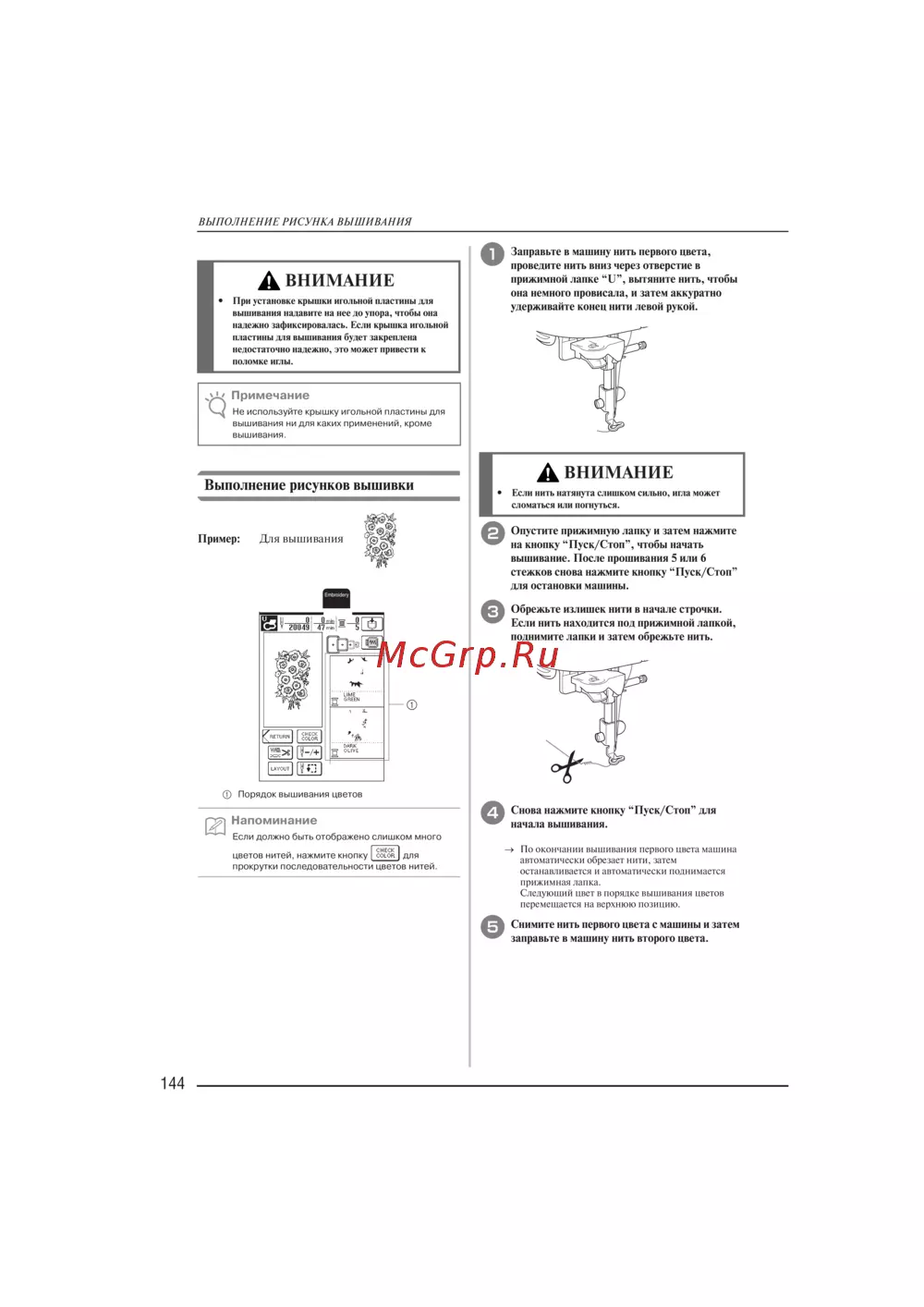 стежков снова нажмите кнопку “Пуск/Стоп”