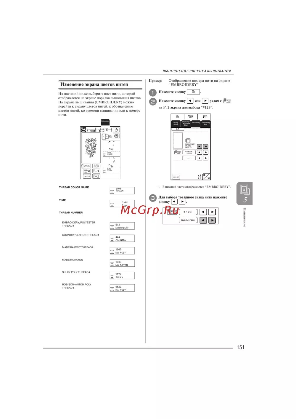 - Инструкции по правильному натяжению нити см на стр 149 p.193