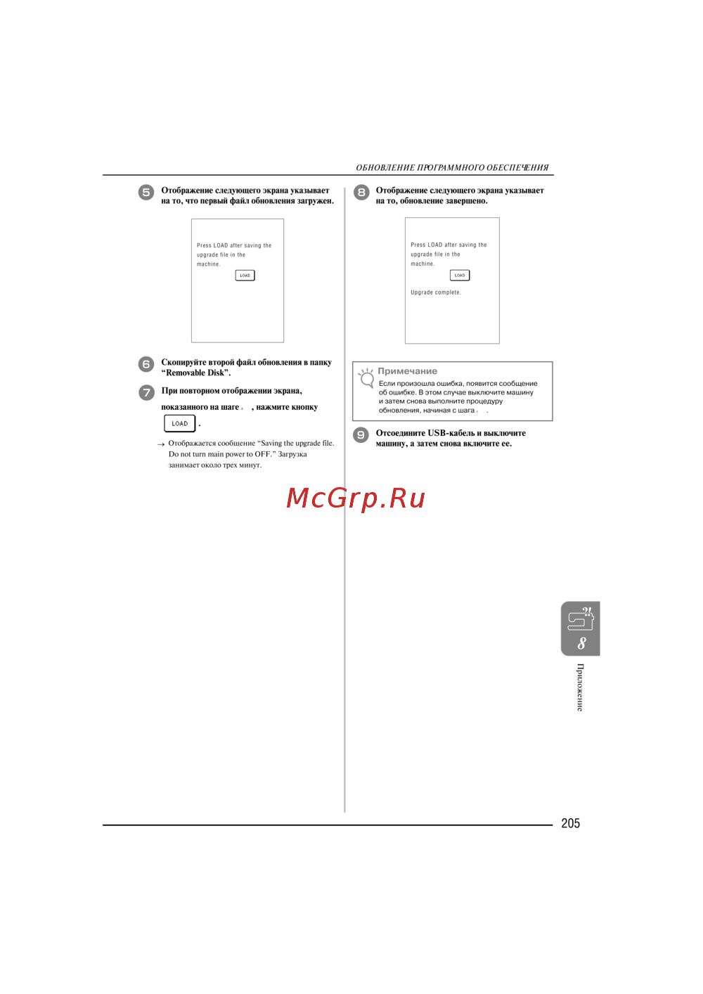 - Это сообщение отображается во время загрузки на машину файла обновления p.202