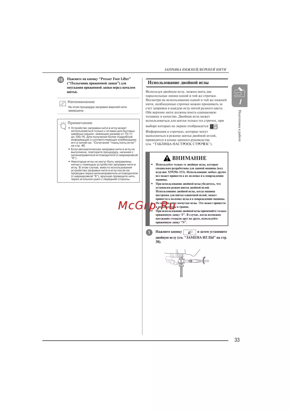 двойную иглу (см. “ЗАМЕНА ИГЛЫ” на стр.
