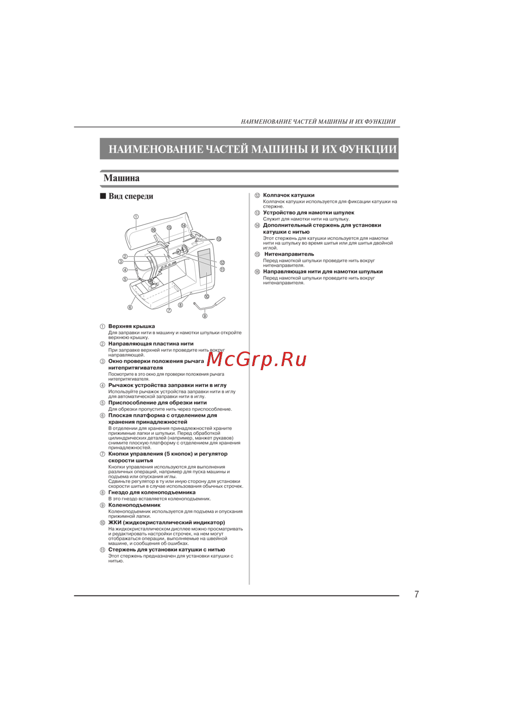 Brother NV 2200 [9/220] Наименование частей машины и их функции