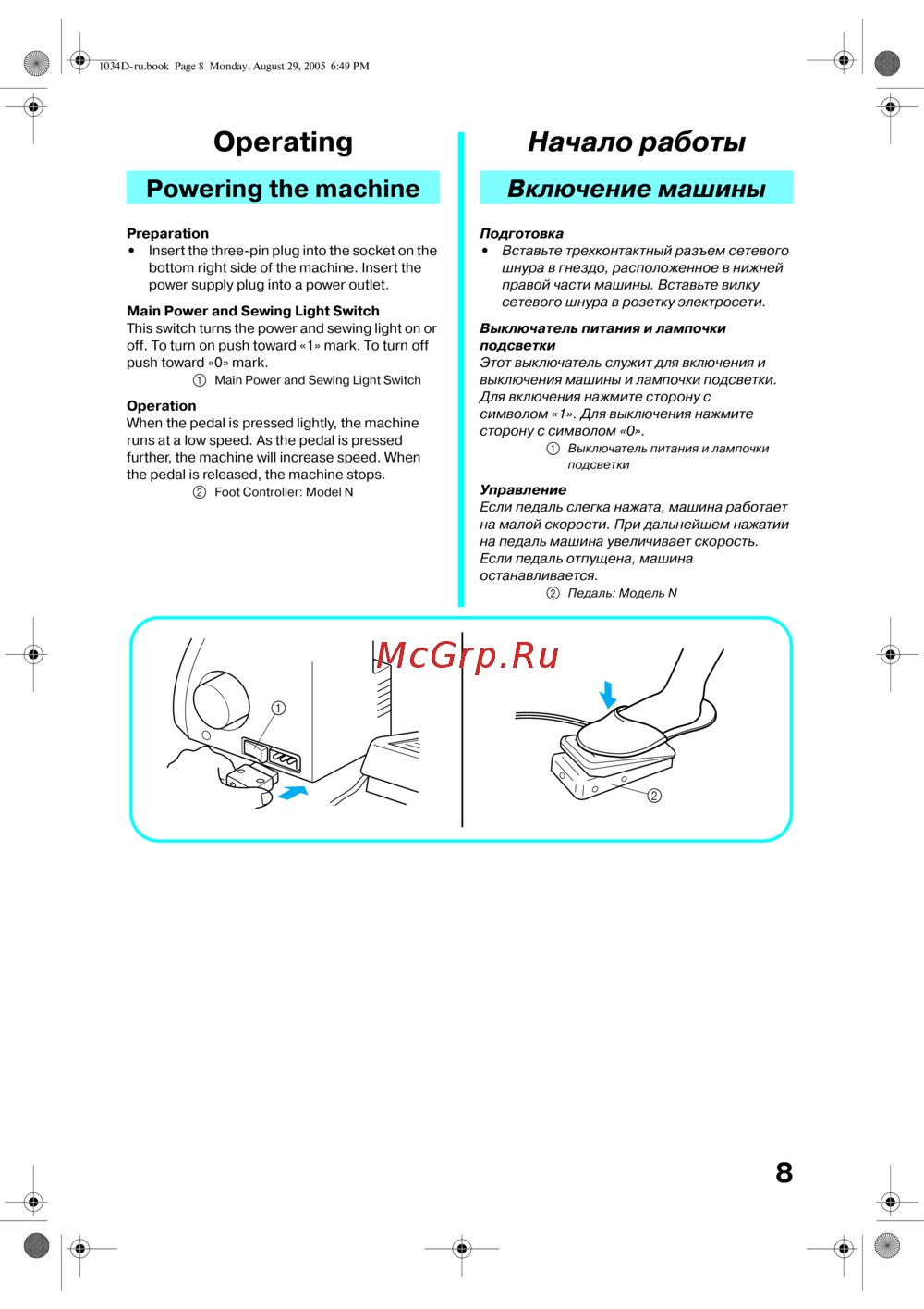 Brother 1034 D [15/68] Powering the machine