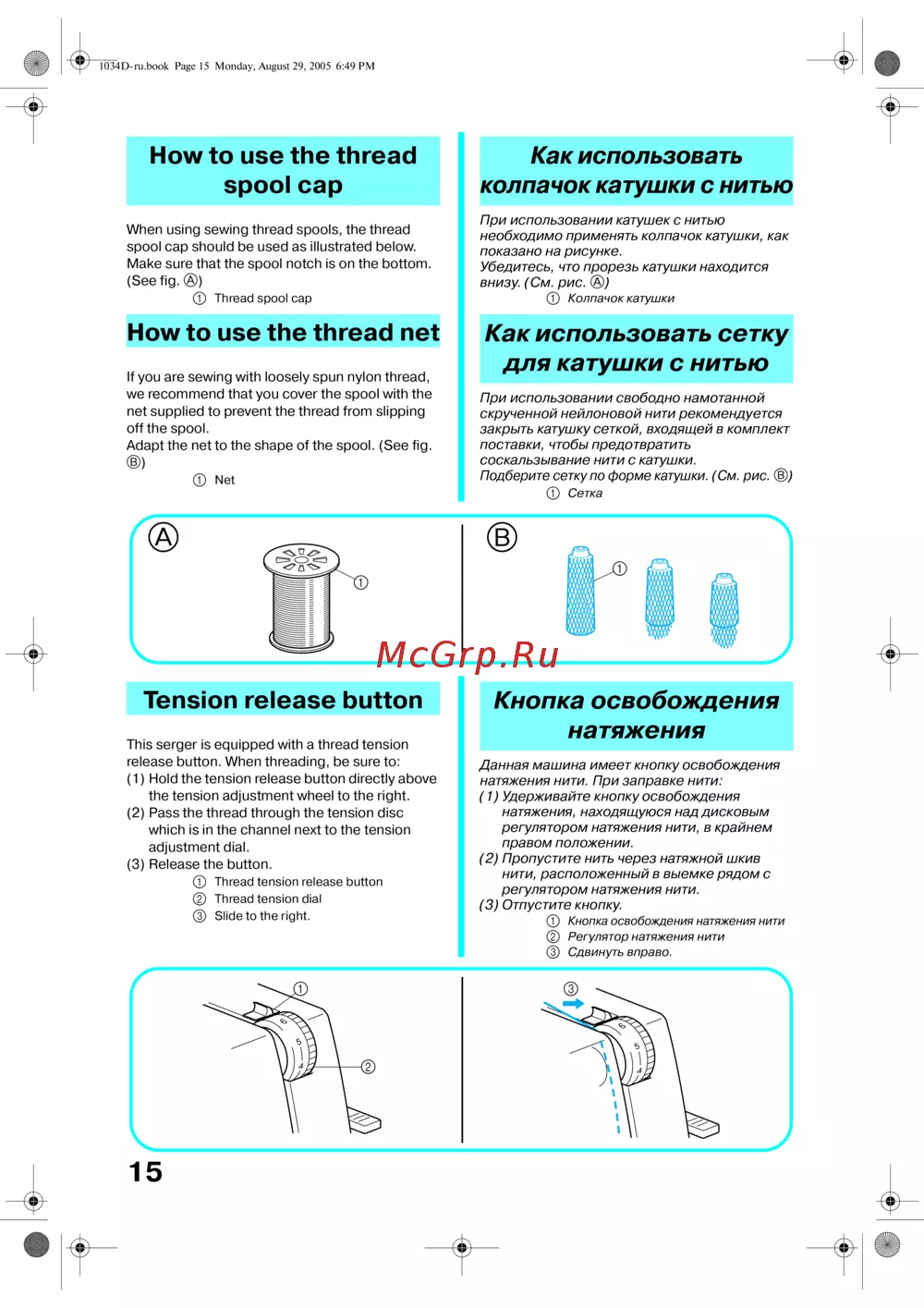 Brother 1034 D [22/68] Кнопка освобождения натяжения