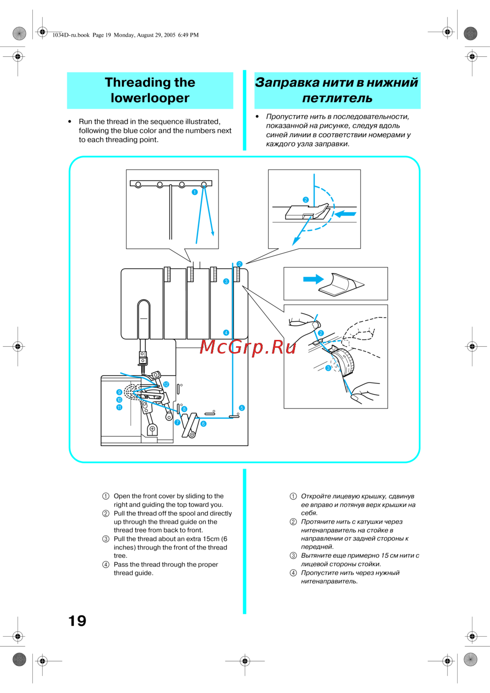 - Приготовления перед заправкой нити p.21