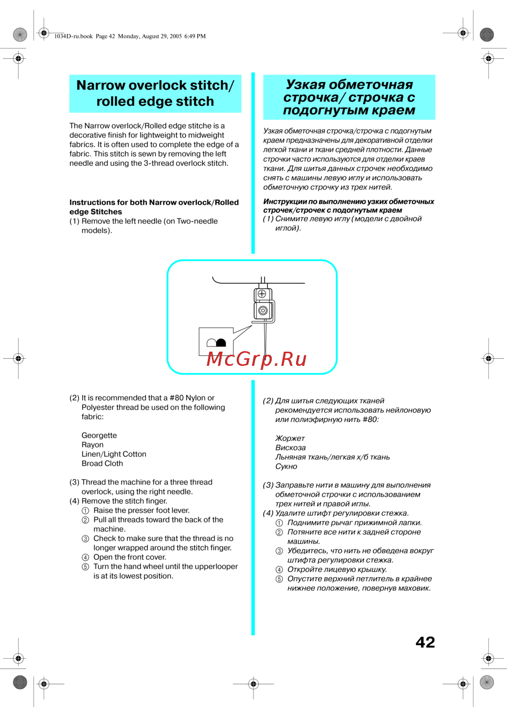 - Узкая обметочная строчка строчка с подогнутым краем p.49