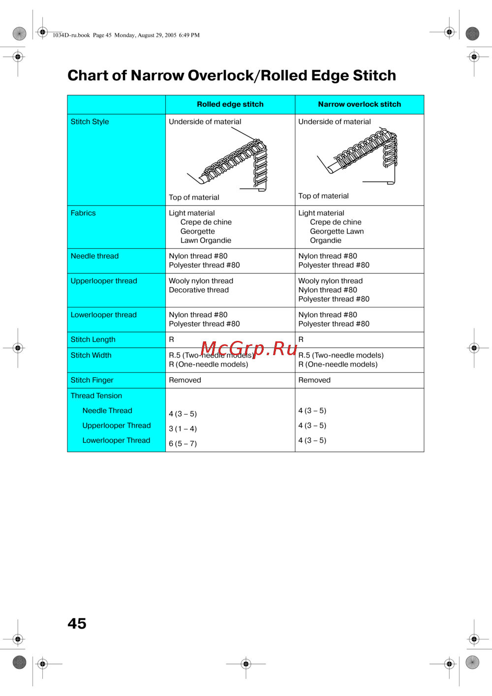 - Narrow overlock stitch rolled edge stitch p.49