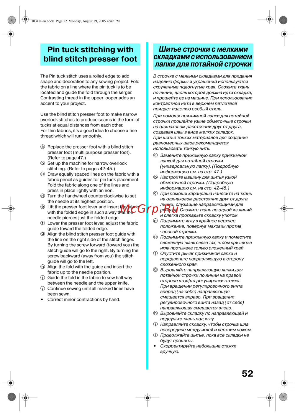 - Для потайной строчки p.55