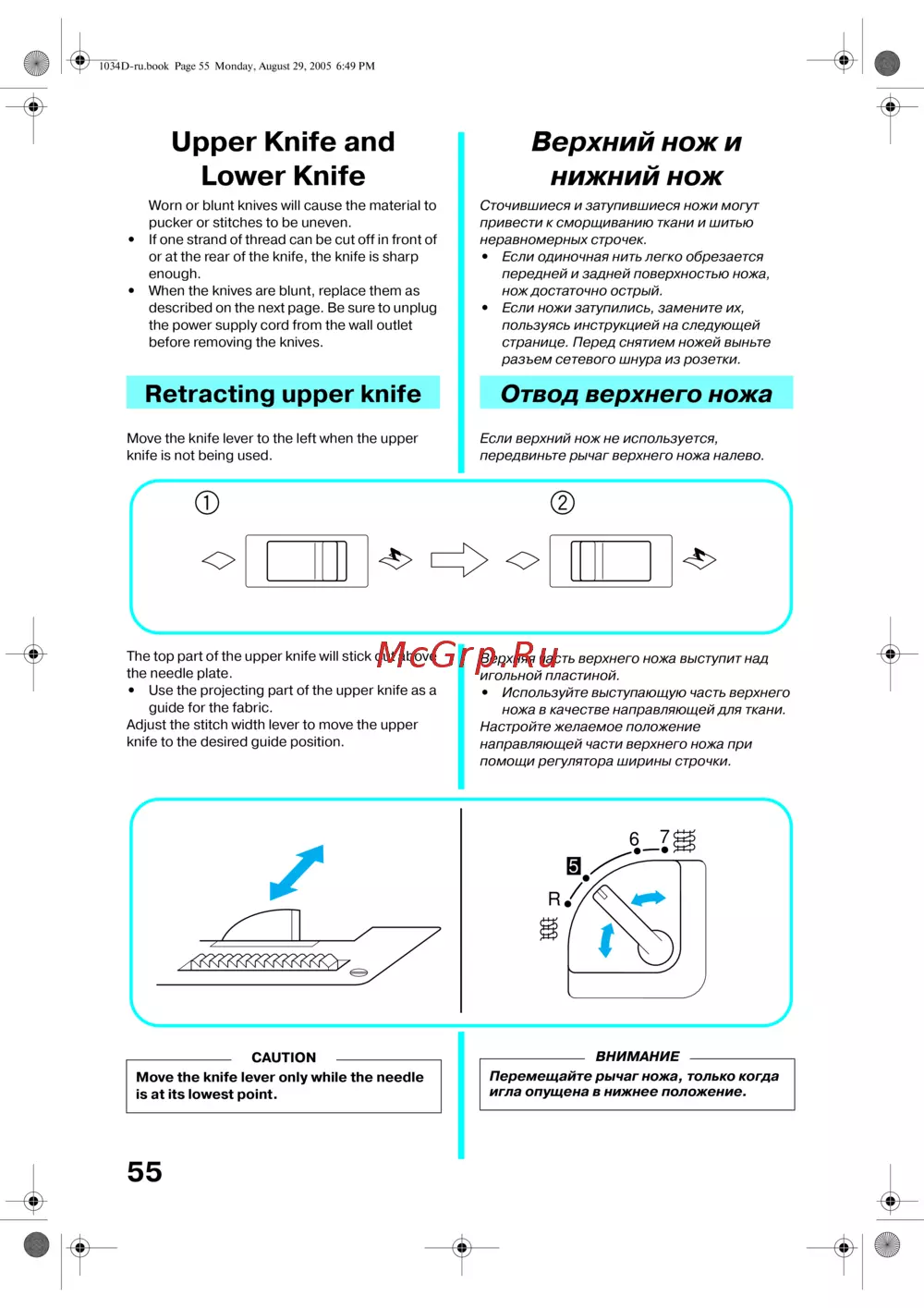 Brother 1034 D [62/68] Верхний нож и нижний нож