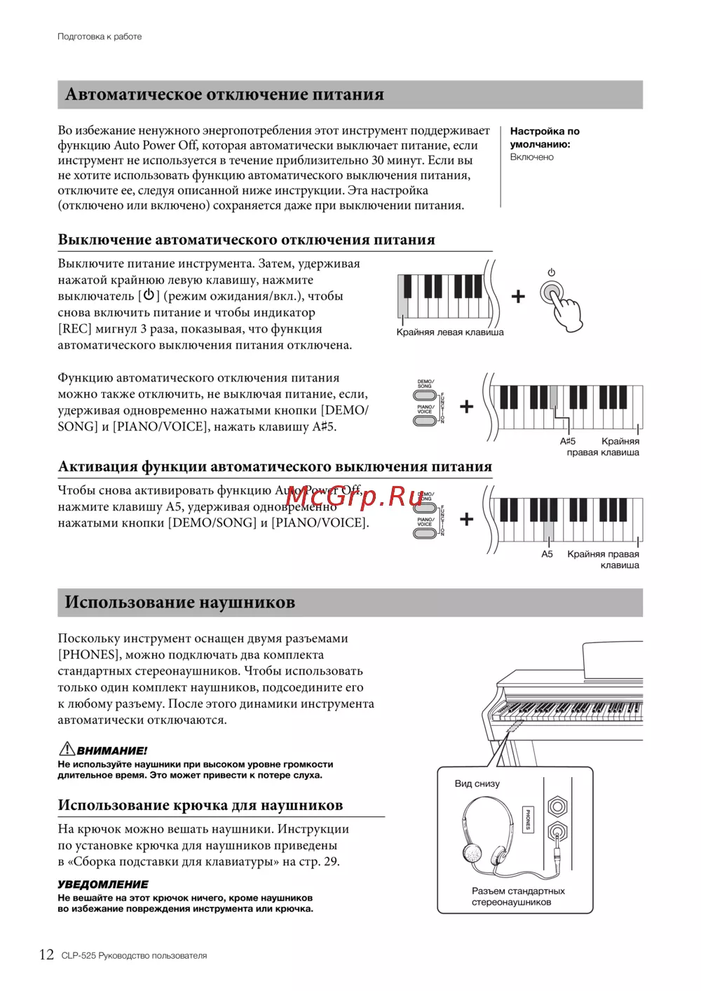 Yamaha CLP-525B [12/36] Использование наушников