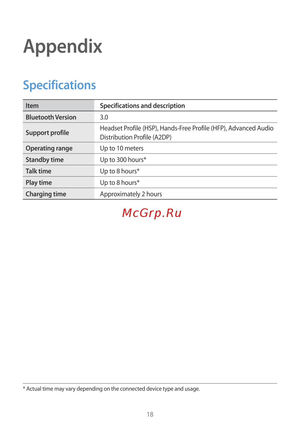* Actual time may vary depending on the connected device type and usage.