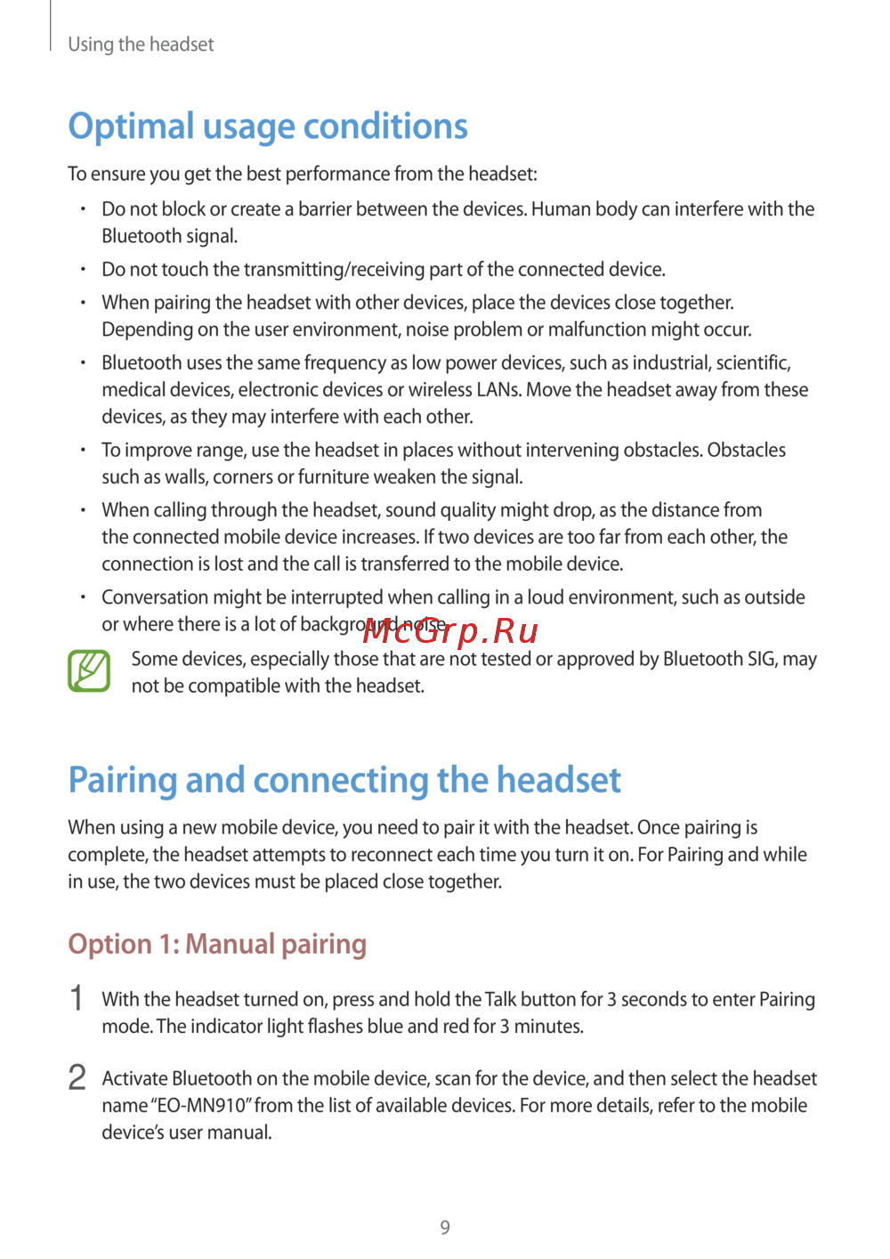 Samsung EO-MN910VBR (EO-MN910VBRGRU) [9/19] Option 1 manual pairing