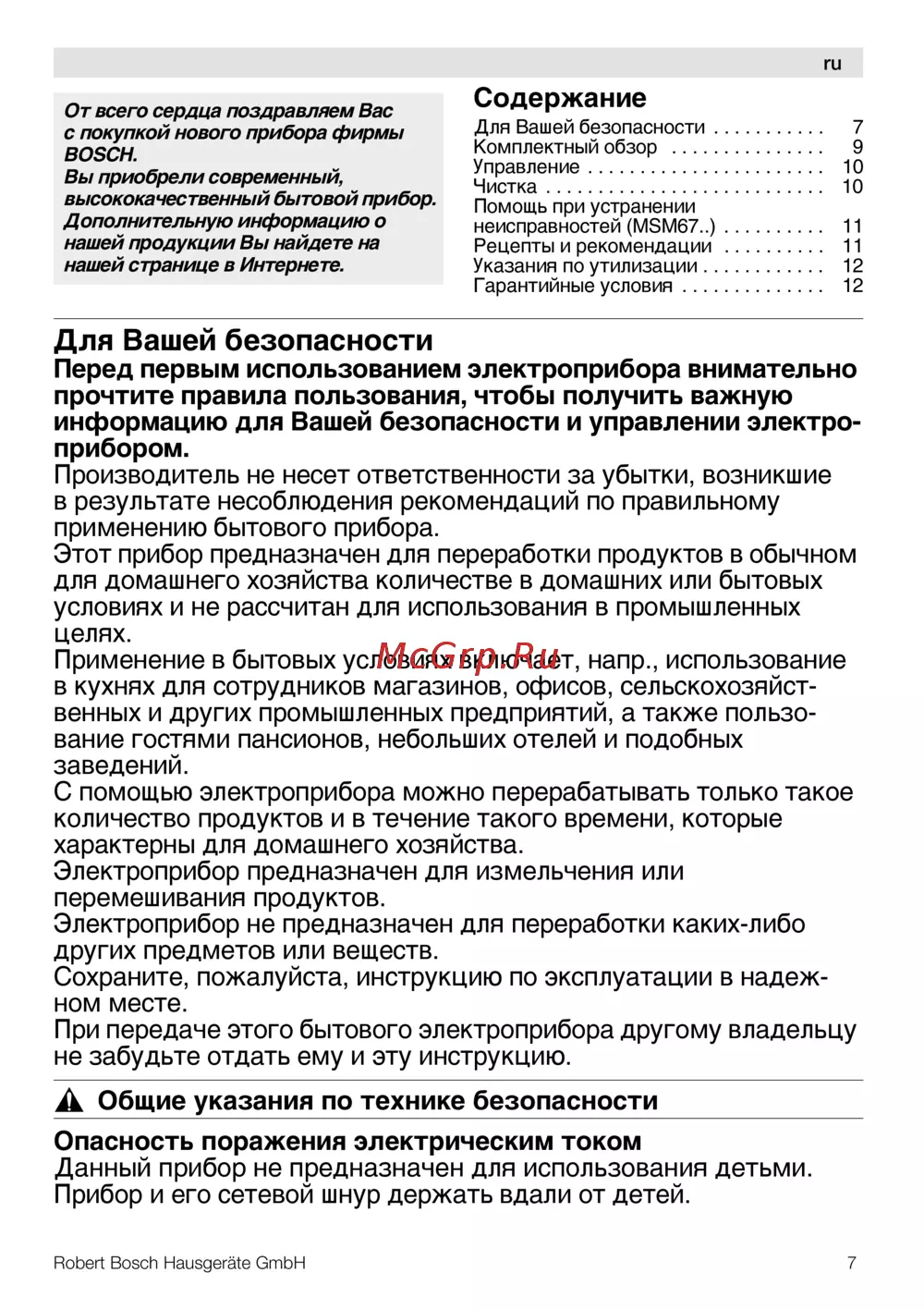 Bosch MSM 6 S 50 BРуководство по эксплуатации -