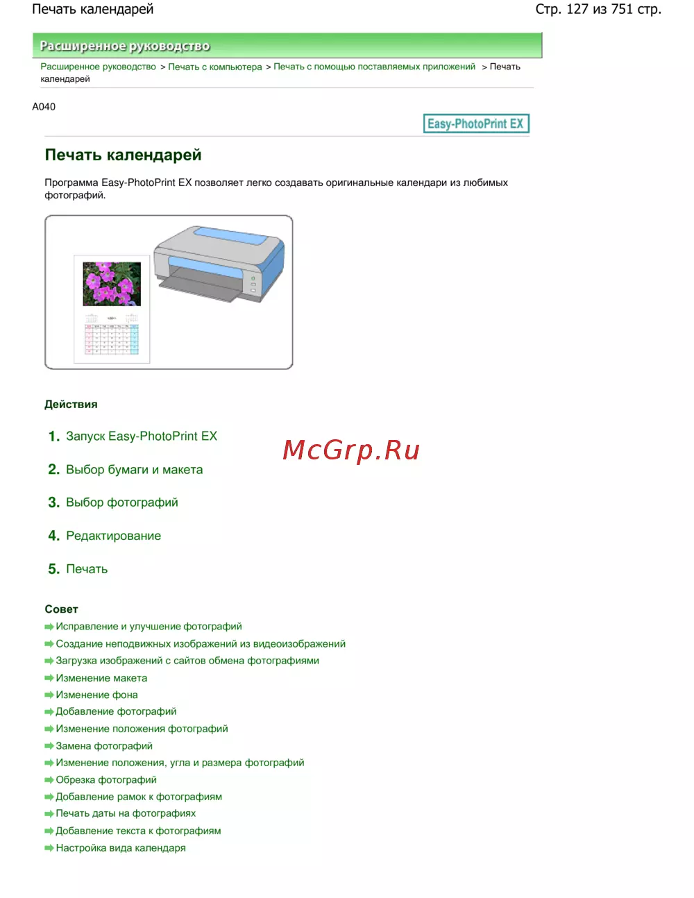 Canon PIXMA MP282 — учебное пособие по созданию календарей с помощью Easy-PhotoPrint EX [127/751]