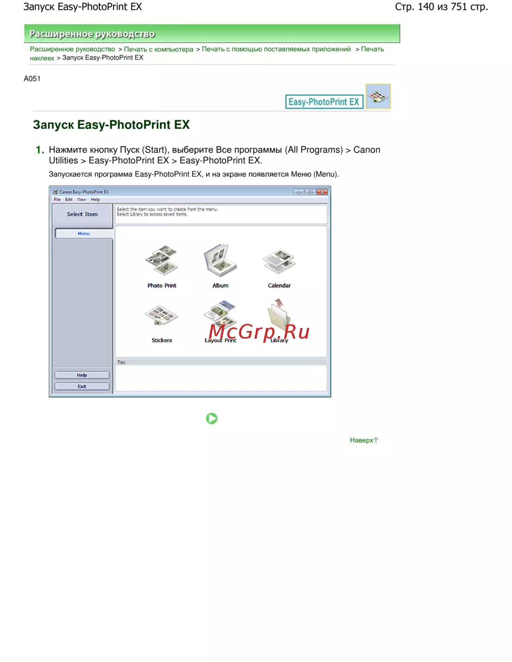 Стр. 140 из 751 стр.Запуск Easy-PhotoPrint EX