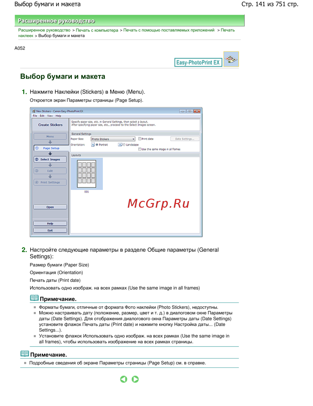 Стр. 141 из 751 стр.Выбор бумаги и макета