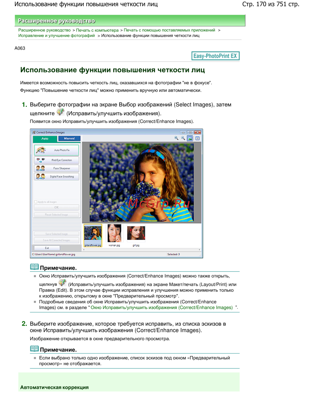 Canon PIXMA MP282 — исправление нечетких лиц на фотографиях: руководство и автоматические коррекции [170/751]
