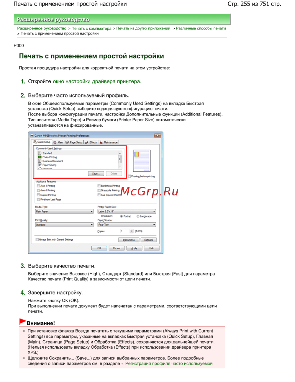Стр. 255 из 751 стр.Печать с применением простой настройки