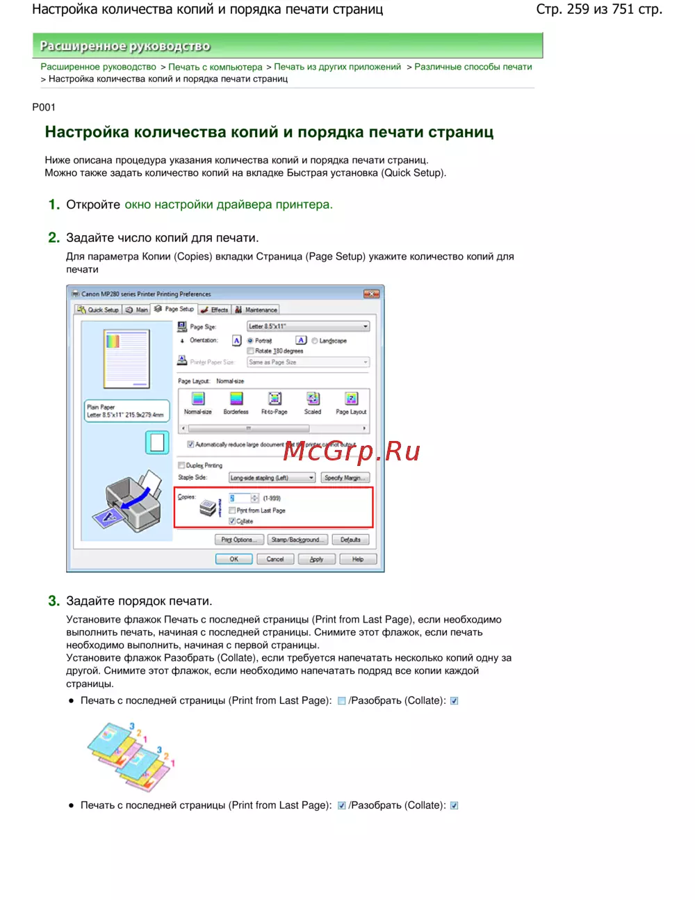 Canon PIXMA MP282 — настройка копий и порядка печати страниц в ПО принтера [259/751]