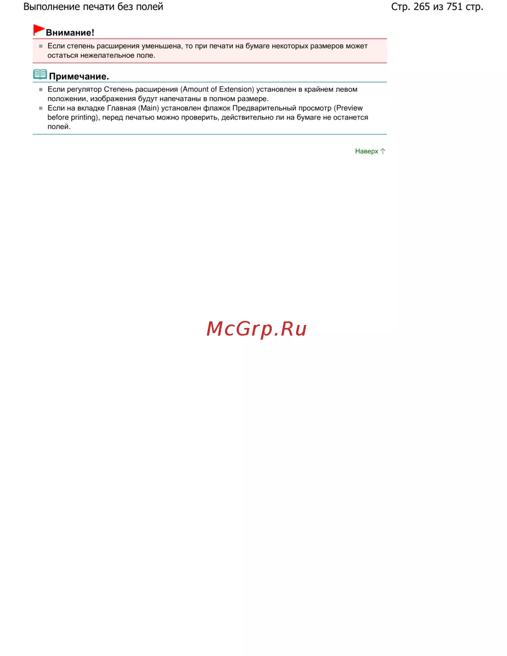Стр. 265 из 751 стр.Выполнение печати без полей