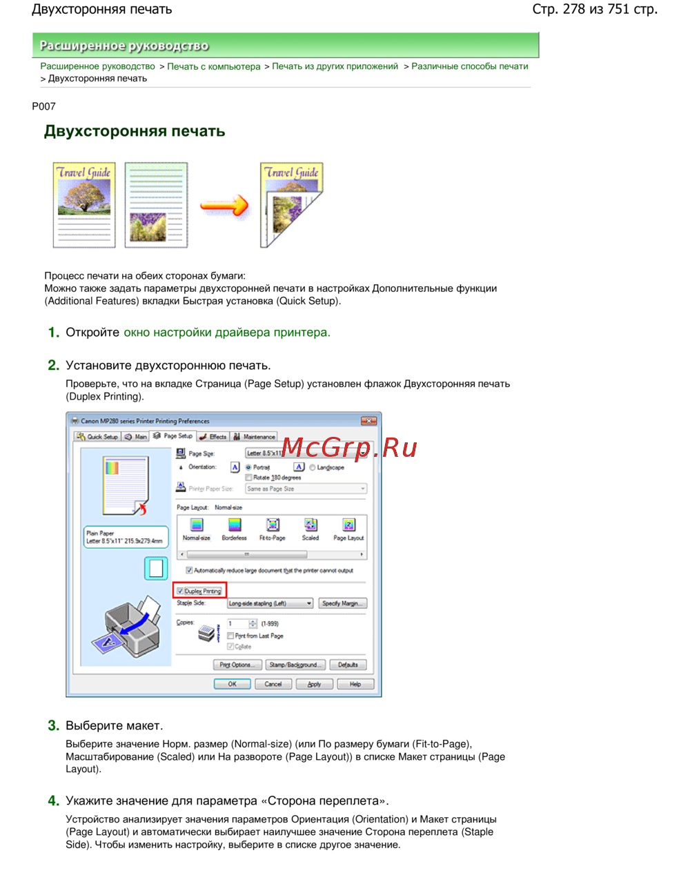 Canon PIXMA MP282 — настройка двусторонней печати в принтере: пошаговая инструкция [278/751]