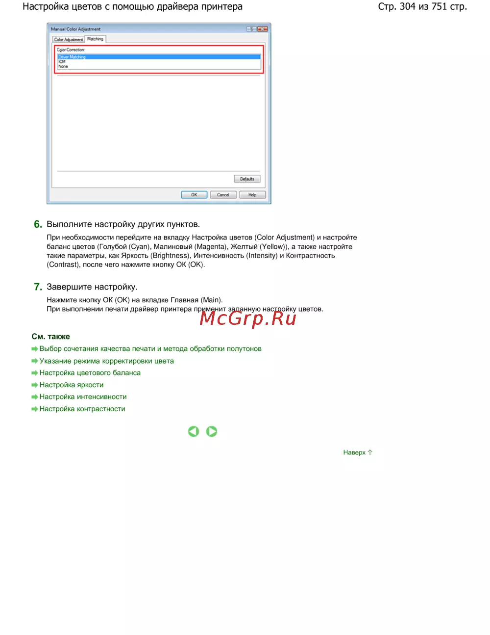 Стр. 304 из 751 стр.Настройка цветов с помощью драйвера принтера