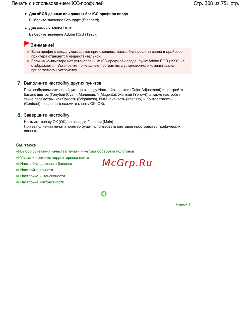 Стр. 308 из 751 стр.Печать с использованием ICC-профилей