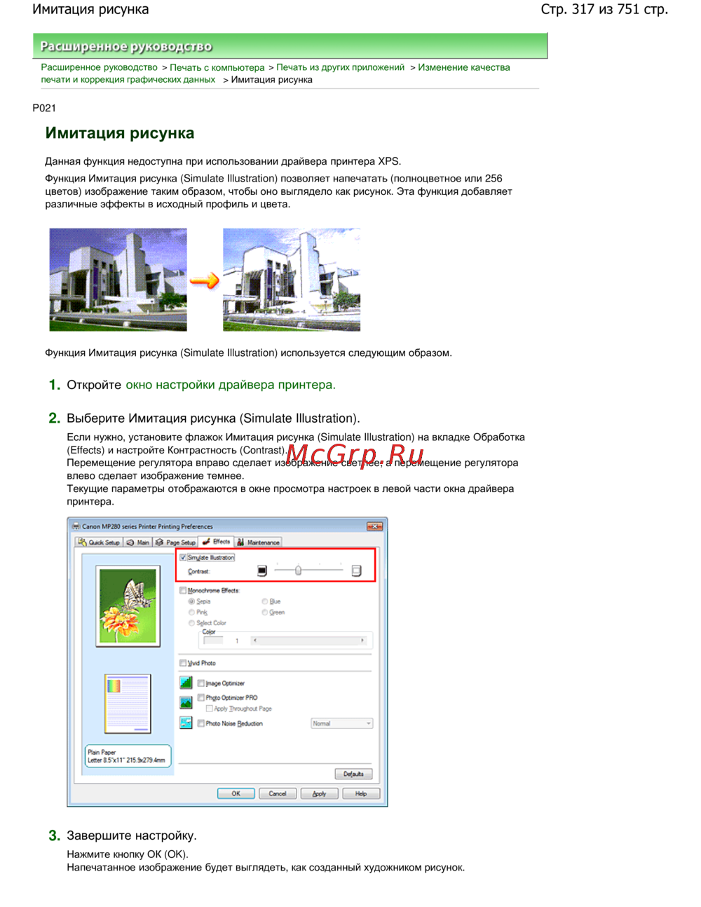 Canon PIXMA MP282 — имитация рисунка при печати: как преобразовать изображения в рисунки [317/751]