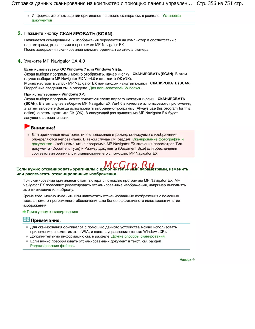 Полная инструкция по использованию MP Navigator EX для сканирования документов, настройки параметров и редактирования изображений. Подробное руководство для пользователей Windows.