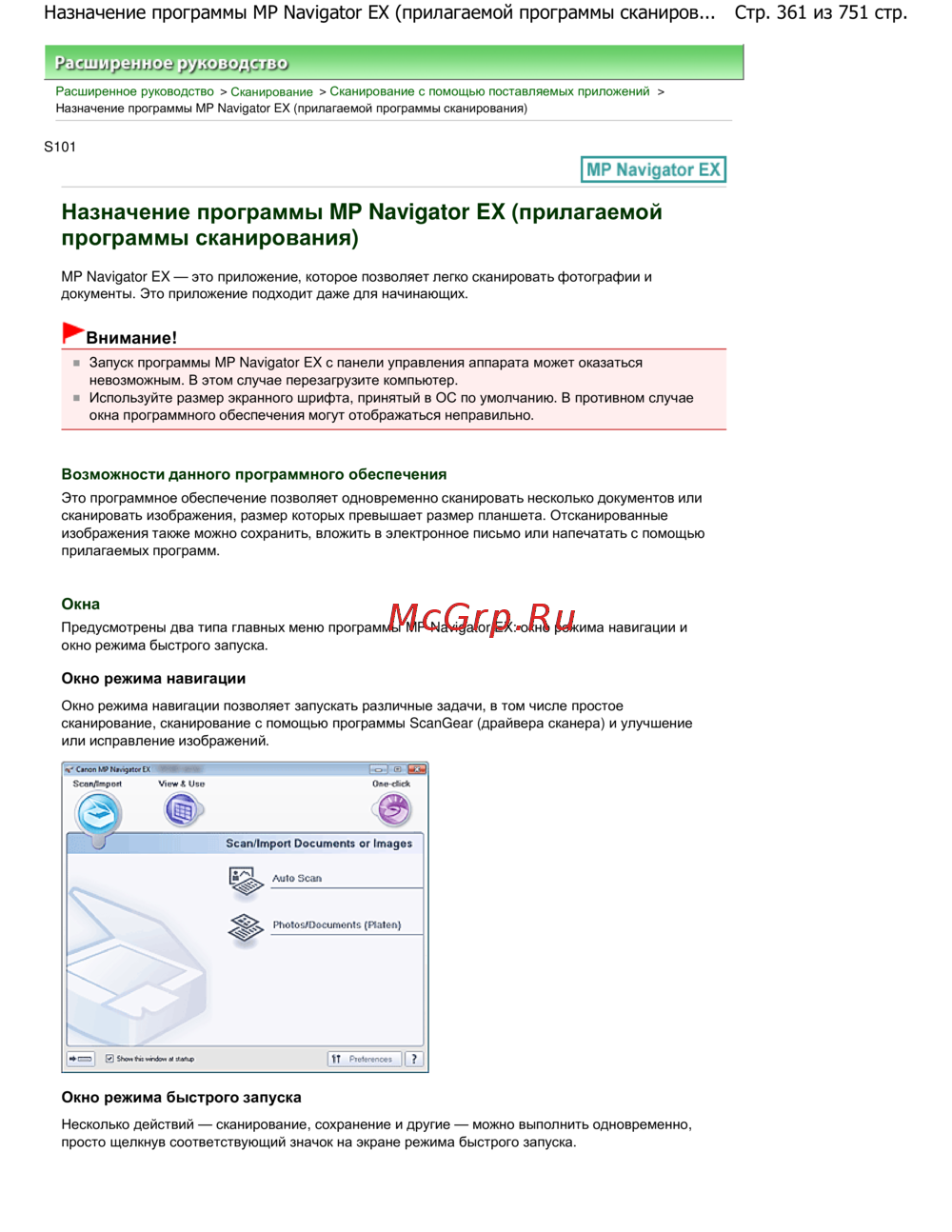 Стр. 361 из 751 стр.Назначение программы MP Navigator EX (прилагаемой программы сканиров...