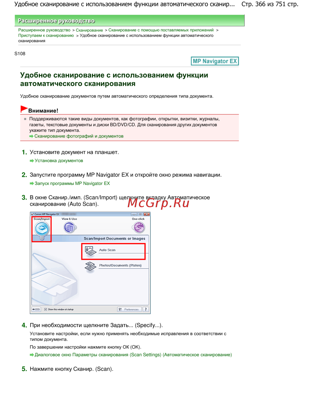 Стр. 366 из 751 стр.Удобное сканирование с использованием функции автоматического сканир...