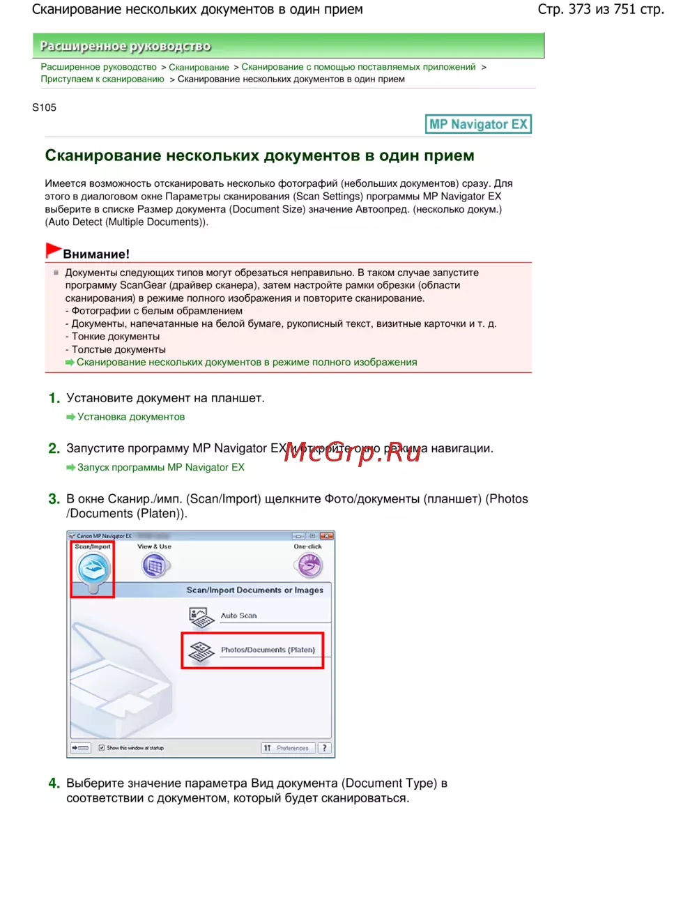 Canon PIXMA MP282 — как сканировать несколько документов одновременно: пошаговое руководство [373/751]