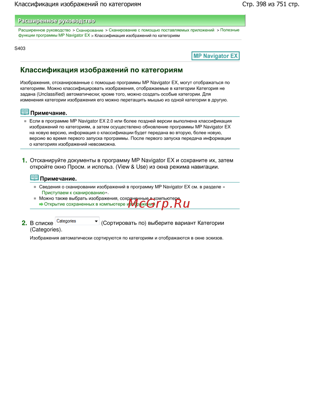 изображений по категориям, а затем осуществлено обновление программы MP Navigator EX