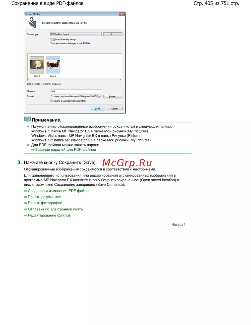 Canon PIXMA MP282 — сохранение отсканированных изображений и работа с PDF-файлами [405/751]