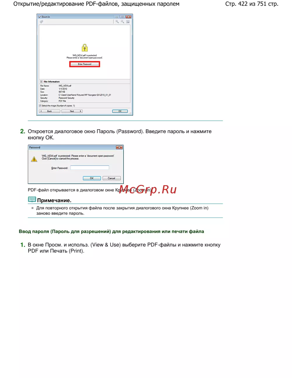 Стр. 422 из 751 стр.Открытие/редактирование PDF-файлов, защищенных паролем