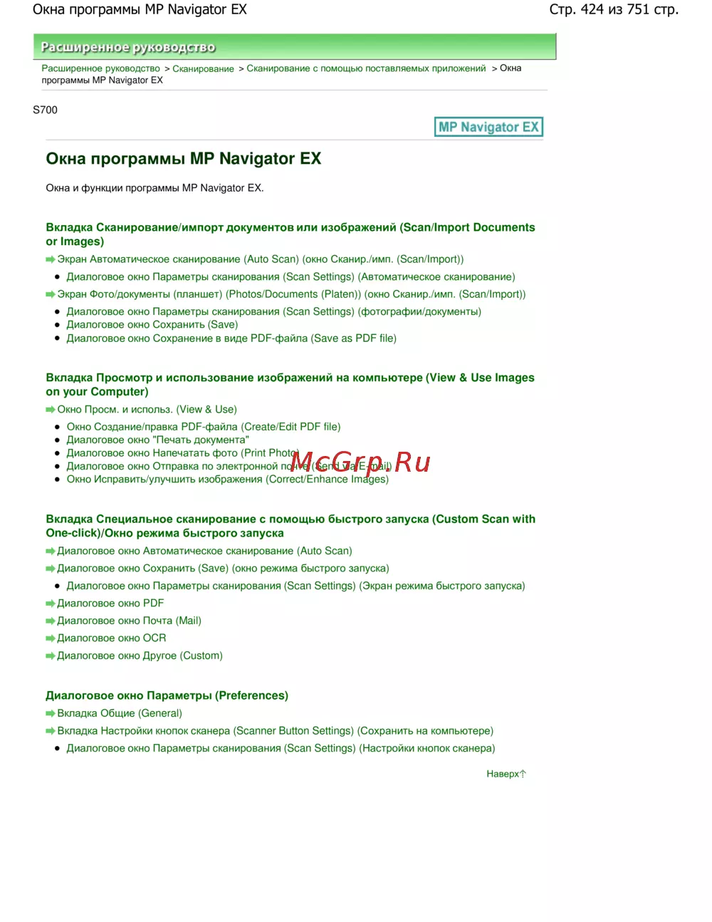Стр. 424 из 751 стр.Окна программы MP Navigator EX