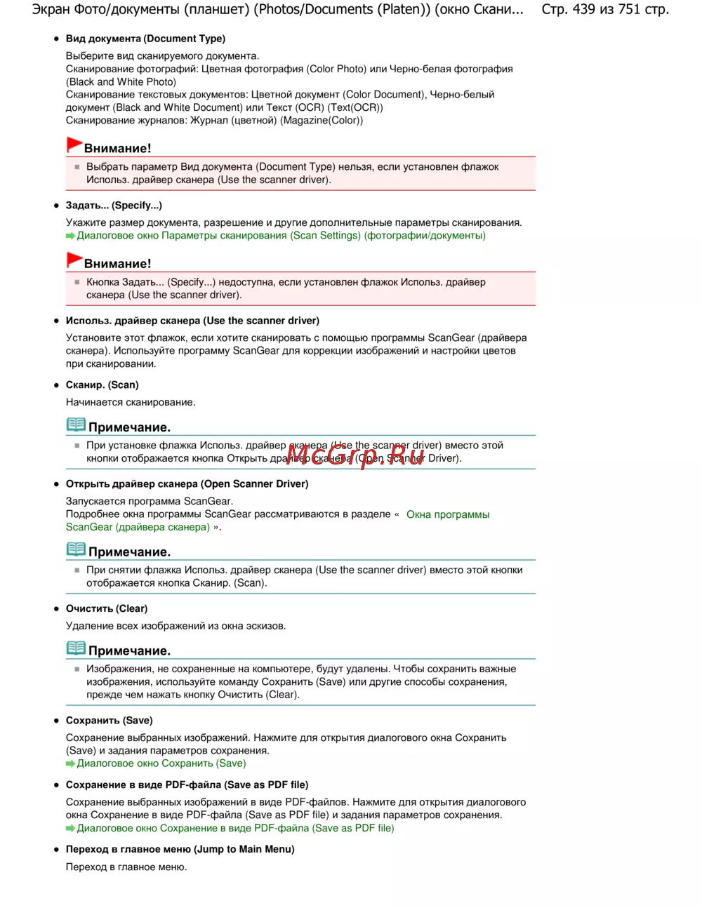 Стр. 439 из 751 стр.Экран Фото/документы (планшет) (Photos/Documents (Platen)) (окно Скани...